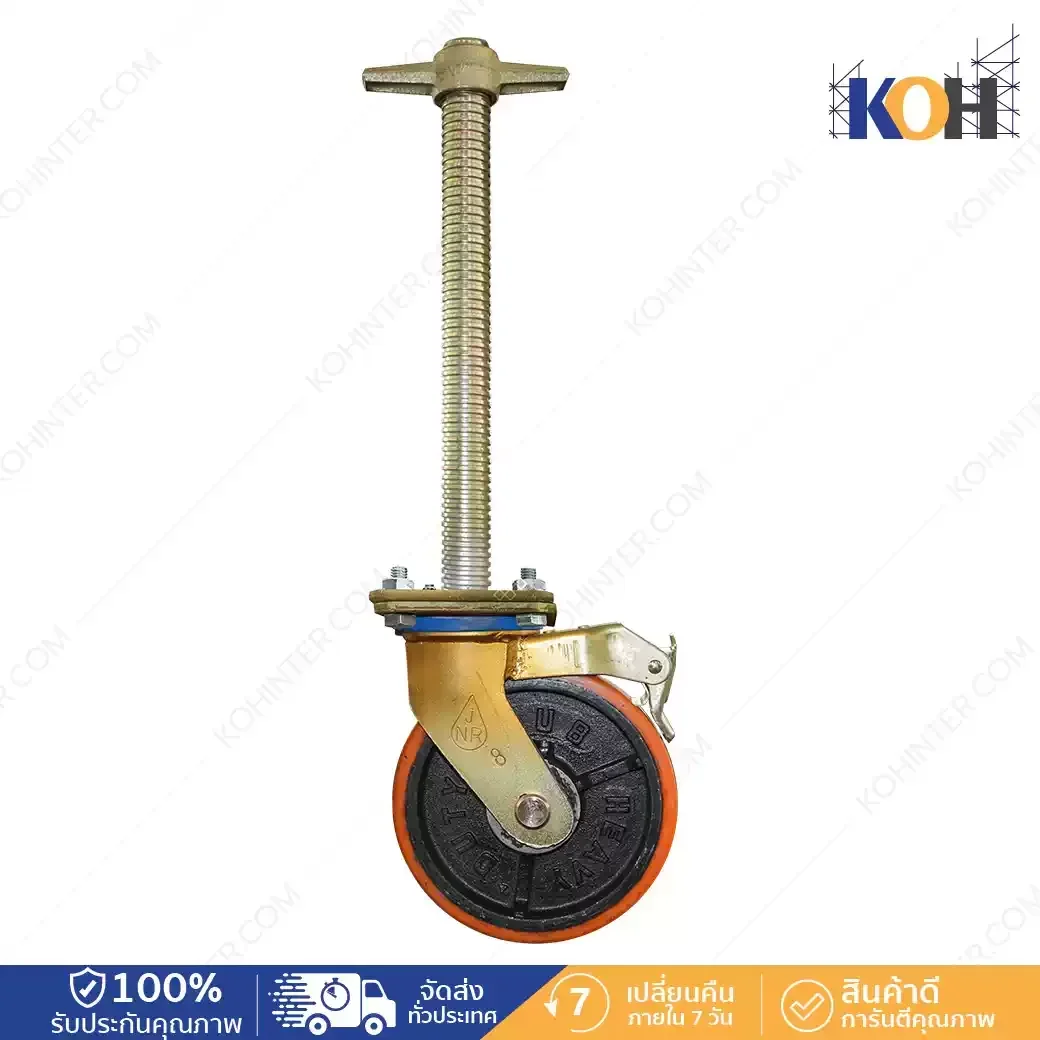ลูกล้อเป็นยูรีเทนสีส้ม 8″+เบรก+เพลาปรับระดับ 40 cm
